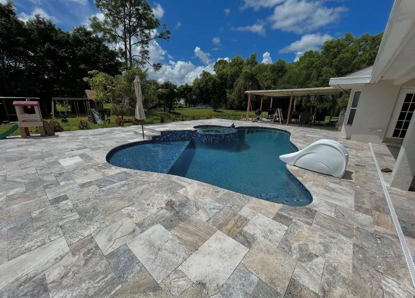 Upgrade your backyard with a custom pool deck built for beauty, comfort, and durability. Using premium materials like marble, travertine, and Artistic Pavers, we create slip-resistant, cool-to-the-touch surfaces.